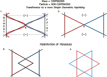 The Edges of the Tetrahedron vibrate as chords, which at some instances are imprinted as a curve and at others as a concavity, cause and effect of the system's rotating movement. In other words, forms of electro-magnetic fields between the "Points" of the ends.