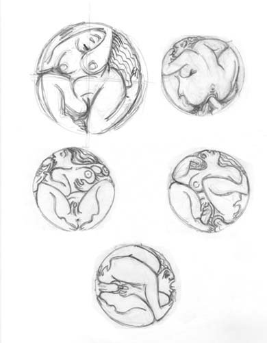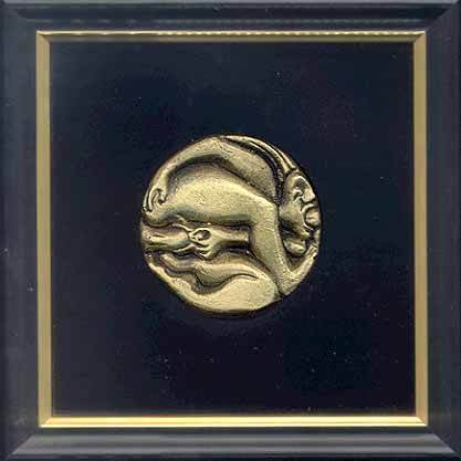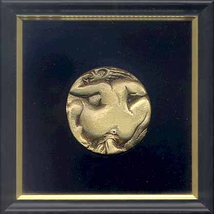 "Ερωτικό 2" Μετάλλιο, διάμετρος 6 cm, ορείχαλκος Κορνίζα 15 x 15 cm