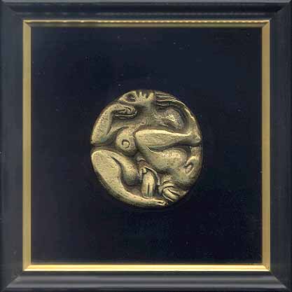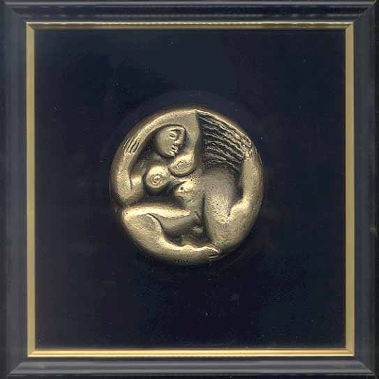 "Ερωτικό 4" Μετάλλιο, διάμετρος 6 cm, ορείχαλκος Κορνίζα 15 x 15 cm