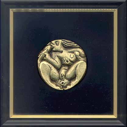 "Ερωτικό 5" Μετάλλιο, διάμετρος 6 cm, ορείχαλκος Κορνίζα 15 x 15 cm