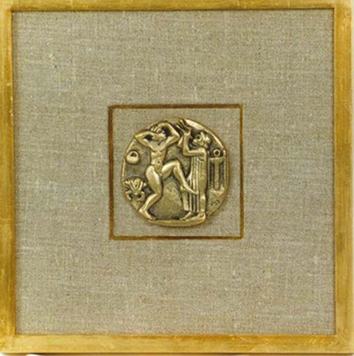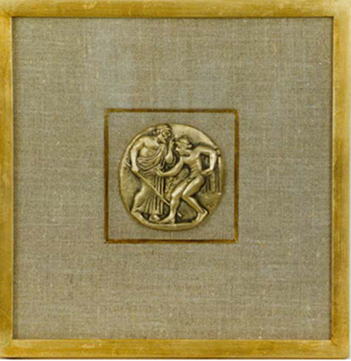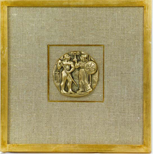 Της αφιερώνει τις προσπάθειές του και ζητά την βοήθειά της. Η παράσταση προβάλλει την ιδέα του κοινωνικού χαρακτήρα των Ολυμπιακών Αγώνων και την καλλιέργεια της κοινωνικής συνείδησης. Ορείχαλκος, διάμετρος 10cm.