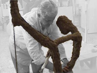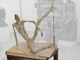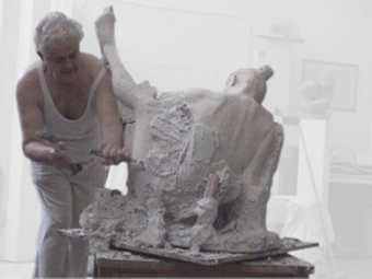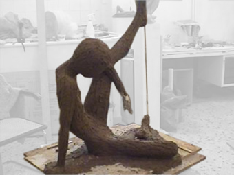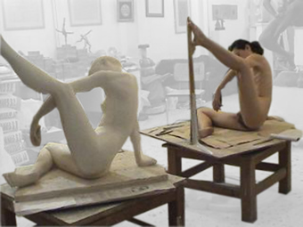 Η δουλειά στο γύψινο, πλέον, έργο συγκεντρώνεται στη σχέση των μεγάλων κλιμάκων με τις μικρότερες, που επιλέγω να σταματήσω το έργο, και στα προβλήματα της πλαστικής των ρυθμών της φόρμας, όπου και ολοκληρώνεται το γλυπτό. Το επόμενο βήμα είναι να σταλεί στο χυτήριο. | |